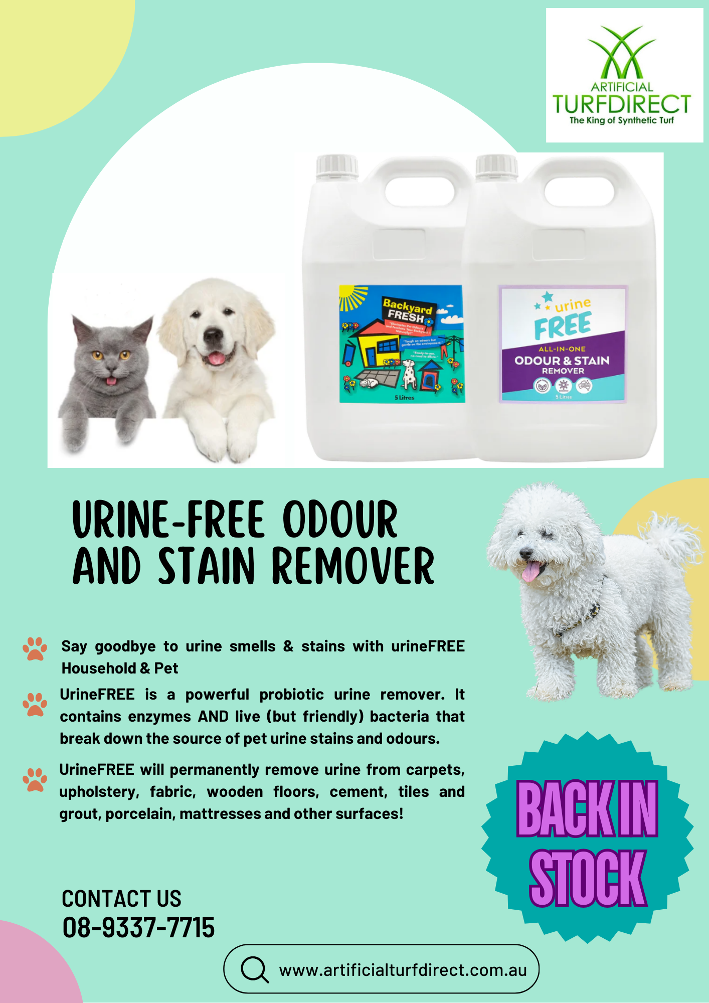 At Artificial Turf Direct, we have everything you need for your new artificial lawn. Whether you’re looking for weed control, pee-proofing, stain removal, proper foam underlay or creative edging strips, we’ve got the solution you need.