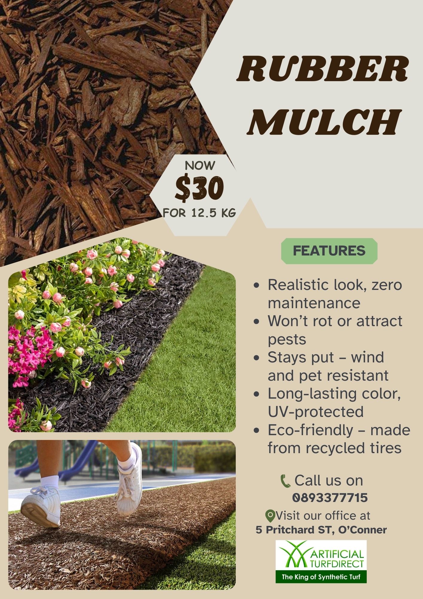 Long lasting rubber mulch is a great alternative to timber mulch and has many benefits.